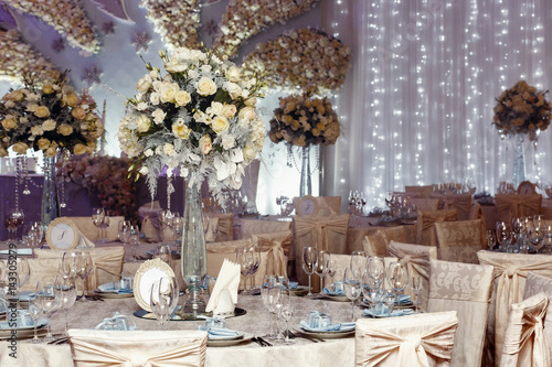 Luxury Wedding Decor With Flowers And Glass Vases With
